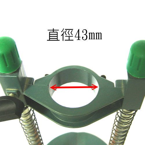 Holding capacity 43mm. 45 degree left/right tilting. 135mm base. 180mm stroke. Cast aluminium body and steel rods.