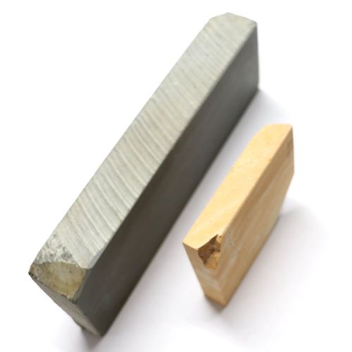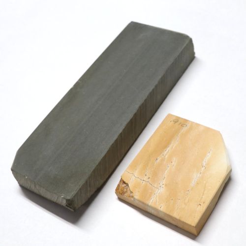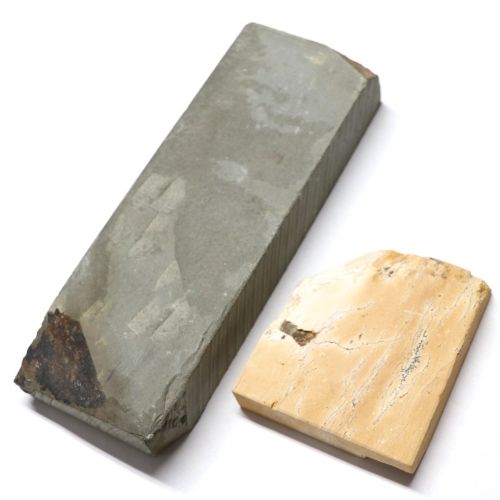 天然砥石具有容易起漿, 研磨次數不需太多就能快速磨利的特點. 磨利後的硬鋼部份刀面呈現鏡面. 由於是天然開採, 請理解外型的不完整與缺角, 以及呎吋上無法精密測量.